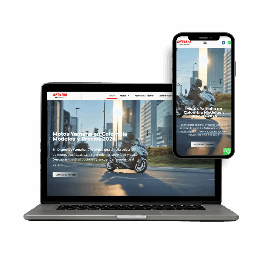 Diseñamos un sitio web corporativo para un concesionario de motocicletas Yamaha en Colombia, mostrando su portafolio de motos, servicios y contacto con un estilo dinámico y moderno.